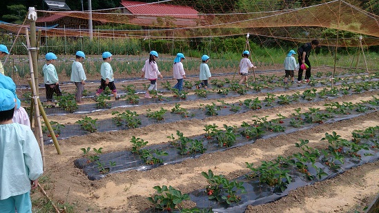 園児たちとイチゴ狩りです